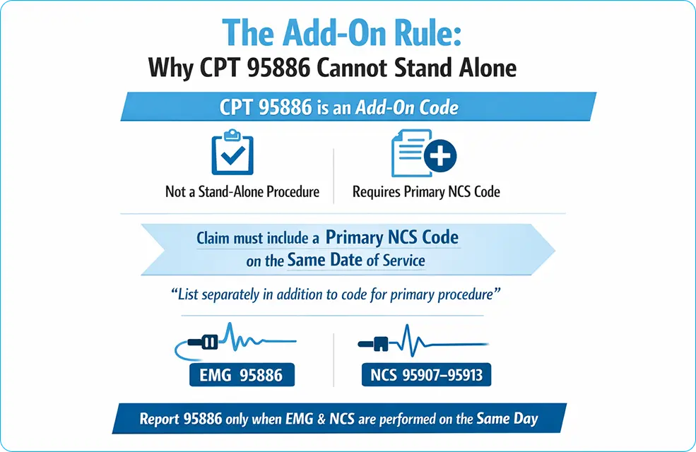 The Add-On Rule: Why CPT 95886 Cannot Stand Alone